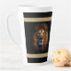 Jésus Lion de Juda avec la Tête de Lion Latte Mug sur un arrière - plan or et noir. Des lettres et des bandes d'or encadrent la tête forte des Lions, donnant à cette tasse une qualité de force et d'autorité.