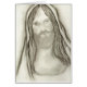 Un croquis noir et blanc simple de crayon de Jésus de regard solennel dans une robe longue