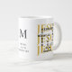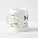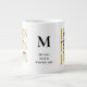 Tasse à café chrétienne élégante avec quelques-unes des descriptions populaires du Seigneur JÉSUS affichées dans un format de mots croisés en gras typographie noire. Dans l'arrière - plan, le nom de Jésus est répété trois fois dans la police serif de couleur or. Le dessin est répété sur le dos. Au milieu, il y a un espace réservé et un monogramme, qui sont personnalisables, de sorte que vous pouvez ajouter votre nom et initial ou créer votre propre texte. Cela ferait un grand don pour les anniversaires, Noël, et pour quiconque aime les citations inspirantes suivantes basées sur l'Écriture biblique : Dieu fera un chemin dans le désert; Dieu tient toujours Ses promesses; Jésus est la Lumière du monde, et Dieu est Celui qui fait des miracles.