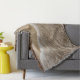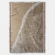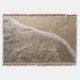 Une couverture de jet avec l'image d'une vague se lavant sur la plage comme vue d'un point de vue élevé.