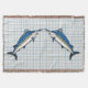 Peu de poissons sont incroyablement beaux que le marlin bleu — et peu de poissons sont plus gros. Le marlin bleu est le plus grand des marlins de l'Atlantique et, sérieusement, l'un des plus gros poissons du monde. Comme pour certaines espèces, la femelle est souvent un peu plus grande que le mâle. Les femelles peuvent atteindre 14 pieds de long et peser plus de 1900 livres, mais la moyenne tourne autour de 11 pieds de long et 300 livres. Un bleu profond sur le dessus et un blanc argenté en dessous, avec une nageoire dorsale prononcée et une longue mâchoire supérieure létale en forme de lance (que certains appellent un bec), les marlins bleus sont l'un des poissons les plus facilement identifiables et reconnaissables au monde. Les marlins sont réputés pour leur endurance incroyable dans une lutte lorsqu'ils sont accro, ce qui en fait un favori des pêcheurs de gros gibier. Bien qu'on puisse aussi parler de n'importe quel super gros poisson, je ne peux pas imaginer qu'il y ait beaucoup plus excitant pour le pêcheur avide que d'accrocher un de ces géants et de le voir casser l'eau dans la lutte. Cette conception rend hommage plus à ce poisson majestueux qu'aux pêcheurs qui le recherchent. Pour cette merveilleuse couverture à jetons, deux marlins bleus se font face les uns aux autres, sautant d'une mer de plaid coloré, ce qui en fait un excellent complément à votre pavillon de pêche ou à votre décor de maison de plage.