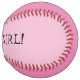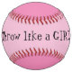 Un softball rose avec un message encourageant à "Jette comme une fille !"