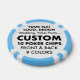 10 x Chips de Poker Casino MARIAGE personnalisés personnalisés, ou jetons pour des boissons et des faveurs. Choisissez parmi 9 couleurs de bande classique sur le bord de la puce de poker : Rouge, Bleu, Vert, Noir, Jaune, Rose, Orange, Bleu clair et Gris. Customisez l'avant, l'arrière et le bord de vos puces de poker avec une photo, une image, une image ou un design, et ajoutez du texte. Concevez, créez, fabriquez vos propres puces de casino à partir d'un modèle ou vierge. Ces jetons de casino amusants ont une surface texturée "facile pile", imprimé de manière frappante sur un plastique composite de haute qualité. Ajoutez votre logo et votre marque pour la promotion d'entreprise, et faites un cadeau de faveur parfait pour un mariage, ou jeton pour un anniversaire, sweet sixteen ou bachelorette, une fête d'entreprise ou autre événement spécial. Un grand cadeau personnalisé pour Noël ou toute occasion. Dimensions de la puce de poker : 1,55 po de diamètre x 0,125 po d'épaisseur.