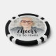 These custom 90th birthday poker chips feature the guest of honor's photo, along with the word "Cheers" in elegant black calligraphy script. A white screen helps make the text pop. A great way to celebrate someone who's turning ninety!