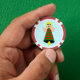 Cet ensemble impressionnant de puces de poker présente un joli Ange de Noël avec des cheveux blonds, des yeux bleus et un grand sourire. Son corps est une cloche festive de couleur verte et rouge avec un clappeur jaune au fond.
