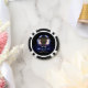 Une image fractale bleue et violette ressemblant au casque et aux épaules d'un astronaute sur un fond étoilé. Personnalisez en ajoutant la valeur de la puce ou autre texte au verso.