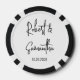 Un mariage moderne boit une puce de poker jeton en noir et blanc avec une illustration de cocktail. Modèle texte entièrement personnalisable avec le nom du couple dans le script de calligraphie au dos. Utilisez ces jetons de boisson personnalisables pour votre bar mariage comme jeton de boisson pour des boissons gratuites.