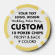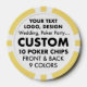 Casino JAUNE personnalisé / Chips de Poker personnalisés. Ensemble de 10 jetons de casino amusants avec une surface texturée "facile pile". Choisissez parmi 9 couleurs de bande classique sur le bord de la puce de poker : Rouge, Bleu, Vert, Noir, Jaune, Rose, Orange, Bleu clair et Gris, et customisez l'avant, le dos et le bord de vos puces de poker avec une photo, image, image ou design, et ajoutez du texte, clairement imprimé sur plastique composite de haute qualité. Concevez, créez, fabriquez vos propres puces de casino à partir d'un modèle ou vierge. Ajoutez votre logo et votre marque pour la promotion d'entreprise, et faites un cadeau de faveur parfait pour un mariage, ou jeton pour un anniversaire, sweet sixteen ou bachelorette, une fête d'entreprise ou autre événement spécial. Un grand cadeau personnalisé pour Noël ou toute occasion. Dimensions de la puce de poker : 1,55 po de diamètre x 0,125 po d'épaisseur.