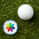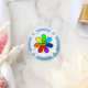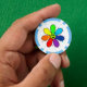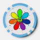 Une fleur souriante avec sept pétales arc-en-ciel tacheté et un arrière - plan de pois coloré.