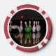 Des jetons de poker avec une photo d'épingles de bowling abattus par une boule de bowling.