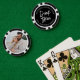 These custom poker chips feature your photo on one side for a personal touch, making them a unique keepsake. The text side is designed with a reversed color look, featuring a light background with dark fonts for a clean, high-contrast finish. The bride and groom’s names appear at the top, “Drink Token” is displayed in the center, and “One Free Well Drink” is placed at the bottom.