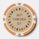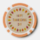 Cet ensemble impressionnant de puces de poker présente une image art numérique d'une série de feuilles de chêne dans les tons rouge, orange, jaune et vert disposés en cercle autour d'un texte avec des lettres alternées de rouge, jaune, orange et vert qui dit Bon thanksgiving Day.