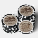 Ces jetons de poker amusants sont conçus pour une soirée d'enterrement de vie de garçon sur le thème western cowboy. L'avant du jeton porte l'inscription : "The Sheriff, The Groom" (Le Shérif, le marié) avec son nom, et l'arrière porte le nom du marié, la date de l'événement, et l'inscription "He's Tying the Knot !" (Il se marie !). Le design est rustique avec un fond de planches de bois patiné, des bottes de cowboy, des chapeaux, des lassos et un badge de shérif. Mignons et amusants, ces jetons sont un excellent moyen de le surprendre lors de sa soirée d'enterrement de vie de garçon !