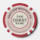 Une puce de poker rouge dispose d'un endroit où vos invités à écrire dans qui ils parient gagnera le Derby sur le front avec un cheval de course aquarelle et jockey sur l'illustration d'ivoire au milieu. Au fond, il y a un endroit où les invités peuvent écrire leur nom avec TALK DERBY TO ME dans le centre. CORRESPONDANCE d'objets dans notre collection.