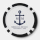 Ajoutez une touche élégante à votre mariage nautique avec cette faveur de mariage marine bleu ancre classique. Conçu avec une illustration d'ancre bleu marine, il présente un monogramme personnalisé de mariée et de mariée, le nom et la date du mariage dans une police serif bleu marine sur un arrière - plan blanc. Parfait pour les mariages nautiques, les mariages sur la plage et plus.