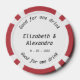 Un bon ou un jeton de boisson moderne et amusant pour votre fête, avec vos noms et votre date au verso. Un verre d'aquarelle de vin rouge présenté à l'avant de la puce de poker.