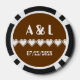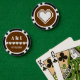 Offrez aux invités, aux demoiselles d'honneur, aux groomsmen, ou à toute autre personne qui assistera ou aidera avec votre mariage geek ou événement spécial un plaisir amusant avec ces jetons de poker personnalisables. Un côté de la puce de poker présente un coeur pixélisé blanc sur un riche arrière - plan chocolat brun. L'autre côté dispose d'un ensemble d'exemples d'initiales et de date séparées par un motif de jeu vidéo rétro lié aux coeurs 8 bits. L'exemple de texte peut être customisé avec vos propres détails ou un message spécial de votre choix pour créer un jeton unique et personnel pour commémorer votre grand jour. Ce design correspond à n'importe quel produit de la gamme Our 8 bits Hearts in Chocolate afin que vous puissiez rendre votre mariage ou événement spécial sur le thème du jeu aussi coordonné que vous le souhaitez.