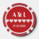 Offrez aux invités, aux demoiselles d'honneur, aux groomsmen, ou à toute autre personne qui assistera ou aidera avec votre mariage geek ou événement spécial un plaisir amusant avec ces jetons de poker personnalisables. Un côté de la puce de poker présente un coeur pixélisé blanc sur un arrière - plan rouge cerise brillant. L'autre côté dispose d'un ensemble d'exemples d'initiales et de date séparées par un motif de jeu vidéo rétro lié aux coeurs 8 bits. L'exemple de texte peut être customisé avec vos propres détails ou un message spécial de votre choix pour créer un jeton unique et personnel pour commémorer votre grand jour. Ce design correspond à n'importe quel produit de la gamme Our 8-Bit Hearts in Cherry afin que vous puissiez rendre votre mariage ou événement spécial de jeu aussi coordonné que vous le souhaitez.