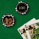 Ces jetons de poker personnalisés présentent un numéro gras sur le devant, qui peut être personnalisé avec n'importe quel numéro jusqu'à quatre chiffres. Le devant a un fond noir élégant avec un texte doré élégant pour un look raffiné et classique. Le dos comprend un espace pour une photo, ce qui les rend parfaits pour les mariages, les caves à hommes, les enterrements de vie de garçon ou comme cadeau mémorable. Tout le texte, les nombres et les détails peuvent être entièrement personnalisés pour correspondre à votre style ou thème d'événement.