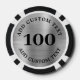 Personalize these faux silver metal poker game chips with your business logo in the front and your own text on the back. It includes a 100 value denomination to be used for playing in a casino night, and it can be edited with any value amount.