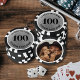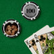 Ces jetons de poker personnalisés présentent un numéro en gras sur le devant, qui peut être personnalisé avec n'importe quel nombre jusqu'à quatre chiffres. Le devant a un fond argenté métallisé faux associé à des polices noires nettes pour un look élégant, moderne et saisissant. Le verso comprend un espace pour une photo, ce qui les rend parfaits pour les mariages, les caves à hommes, les enterrements de vie de garçon ou comme cadeau mémorable. Tous les textes, nombres et détails peuvent être entièrement personnalisés pour s'adapter à votre style ou au thème de l'événement.