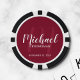 Ajoutez une touche personnelle à votre mariage avec des puces de poker personnalisées pour groomsmen. Ce design présente le nom des groomsmen personnalisées en style de police de script moderne blanc et monogramme en style de police de script moderne rouge bordeaux clair comme arrière - plan avec titre et date mariage en blanc moderne sans serif style de police sur arrière - plan rouge bordeaux. Aussi parfait pour le meilleur homme, père de la mariée et plus.
