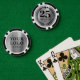 Poker chips for employees or clients to celebrate the 25th anniversary of your business. Commemorative design personalized with your company logo and the year on the front, with a faux silver metal background, a laurel branch, and stars. On the back, it has space to add a bigger logo or an image, and it can be changed to text by clicking the button to edit the design.