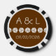 Offrez aux invités, aux demoiselles d'honneur, aux groomsmen, ou à toute autre personne qui assistera ou aidera avec votre mariage geek ou événement spécial un plaisir amusant avec ces jetons de poker personnalisables. Un côté de la puce de poker présente une peau blanche à vingt côtés sur un riche arrière - plan chocolat brun. L'autre côté a un échantillon d'initiales et de date séparées par un motif de d20s. L'exemple de texte peut être customisé avec vos propres détails ou un message spécial de votre choix pour créer un jeton unique et personnel pour commémorer votre grand jour. Ce design correspond à n'importe quel produit de la gamme Tabletop Chic in Chocolate afin que vous puissiez rendre votre table thème mariage ou événement spécial aussi coordonné que vous le souhaitez.