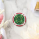 The image shows a poker chip with a vibrant design featuring green ferns and tropical leaves within circular patterns. The chip has a red and white edge.