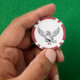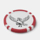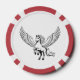 stylish black and white winged horse illustration placed on a classic red and white poker chip design. perfect for casino themes, gambling accessories, fantasy lovers, logo designs, stickers, apparel, and modern graphic projects.