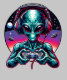 Alien jouant à des jeux vidéo avec casque et contrôleur à la main. L'art de l'air alien coloré.
