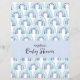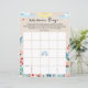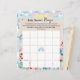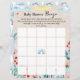 Jeu "Bingo" QUE RECEVRA LA FUTURE MÈRE? pour le baby shower. Une feuille de papier est décorée d'illustrations aquarelles de plantes avec des feuilles émeraude et bleu pastel doux, des branches, des arcs-en-ciel et des fleurs roses douces.
