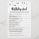 Achetez ce jeu monochrome et profitez de la carte Birthday Feud de haute qualité pour votre événement! Design noir et blanc. RÉPONSES : 1. L'électricité s'est éteinte 2. Bougies 3. Travail 4. Cadeaux 5. À La Diète 6. Ballons 7. Blagues 8. Chocolat 9. Bougies 10. Épingler La Queue 11. Crème glacée 12.Selfie
