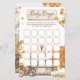 Distrayez vos invités avec cette carte de jeu "Baby Bingo" amusante et interactive. Cette activité est un moyen charmant de faire participer tout le monde pendant que la future maman ouvre ses cadeaux. Conçue avec une scène de marché fermier aquarellée charmante et un feuillage automnal, cette carte complète parfaitement votre fête de naissance sur le thème de l'automne et ajoute un élément ludique à la célébration.