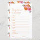 Dégustez vos invités avec ce jeu de mots à baby shower rose et orange floral, parfait pour une petite douche légère et amusante. Doté de fleurs botaniques vives sur un thème de fête de jardin gaie, il est idéal pour un baby shower de printemps ou d'été. Un joli ajout à votre table de jeux de baby showers fleuris, apportant des sourires et des moments doux à votre célébration. CLÉ DE RÉPONSE : 1. Nursery 2. Bébé 3. Bouteille 4. Baisse 5. Pacifique 6. Nouveau-né 7. Couverture 8. Bassinet 9. 10. Formule 11. Échangez 12. Allaitement