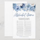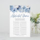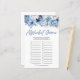 Ceci est un jeu de baby shower avec un alphabet floral bleu poussiéreux.