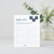 Faisant partie de la collection Blue Jean Baby, ce Baby Name Race Game est parfait pour un divertissement rapide. Ce Baby ABCs Game est amusant pour tous les âges! Trouvez juste un mot par lettre et la personne qui gagne le plus ! Vous, l'hôte, déterminerez le temps alloué aux invités pour jouer. Tout le texte est personnalisable pour correspondre parfaitement aux détails de votre occasion ↣ cliquez simplement sur le bouton "Personnaliser". Mélangez avec d'autres jeux de la collection pour une journée complète de plaisir!