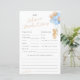 Célébrez la future maman avec cette carte de baby shower de baby shower moderne "Conseil + Prédictions" mignon et simple avec un dessin d'aquarelle d'un ours en peluche mignon avec ballons tan, bleu et gris.