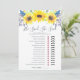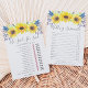 La carte de jeu de baby shower de style chic campagne correspond à notre collection de baby shower Flowerfields et présente une bordure supérieure de tournesols aquarelles jaunes et de petits bourgeons bleu marine. La carte double face vous permet d'obtenir deux jeux en un ! L'avant présente 'Il a dit, Elle a dit' et se retourne pour un jeu de mots sur le thème du mariage. Personnalisez avec le nom de la future mariée et la date de la douche. Pour une personnalisation supplémentaire, n'hésitez pas à me contacter !