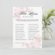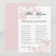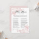 Ce jeu de baby shower présente des fleurs botaniques vintage rose tendre qui encadrent l'élégante typographie dans les coins opposés de l'avant du design. Les questions du jeu sont personnalisables pour s'adapter à la future mariée. La personne avec le plus grand nombre de réponses correctes gagne. Une façon amusante de voir à quel point les invités connaissent la mariée rougissante.