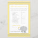 La carte de jeu baby shower "Guess the Price" présente un adorable petit veau d'éléphant nouveau-né avec des éclaboussures en forme de coeur et du texte personnalisé. Le design combine un motif de rayures diagonales classiques avec des pois ludiques et comprend un modèle moderne de couleur neutre de genre, jaune, gris et blanc.