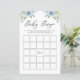 Bingo ! Ajoutez cette carte de jeu de baby shower botanique amusante et ludique à votre événement. Elle présente des illustrations aquarelles de roses et de pivoines blanches et bleues avec un accent de verdure. Personnalisez en ajoutant des textes au dos. Cette carte de jeu de bingo de baby shower florale est parfaite pour les baby showers d'hiver et les fêtes pour garçon.