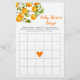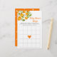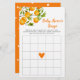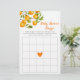 Amusez-vous lors de votre baby shower sur le thème de little cutie avec cette carte de jeu de bingo. Illustration aquarelle de fruits orange sur un arbre. Le jeu de bingo demande aux invités de deviner quels cadeaux la future maman recevra. Illustration originale et design par Namibear Art Studio.©Namibear