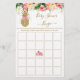 Ces adorables Cartons de Bingo sont un excellent moyen de lancer l'amusement à votre Baby Shower et garantis d'être un énorme succès ! Il suffit de les faire circuler pendant la fête où les invités s'amuseront à les remplir avec les cadeaux qu'ils pensent que la future maman recevra. Les invités cocheront ensuite les carrés au fur et à mesure que les cadeaux seront ouverts ! Le design présente des fleurs aquarelles tropicales estivales avec des confettis pailletés dorés et un ananas pailleté doré. Une calligraphie dorée coordonnée complète le magnifique design floral.