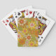 Ces cartes à jouer présentent un motif rétro à fleurs, inspiré des motifs des années 1960 et 1970, avec des fleurs dans les tons orange, jaune, rose et vert olive sur un arrière - plan vert