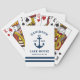 Les cartes de jeu Nautique "Lake House" sont dotées d'une ancre de bateau de style côtier et d'une conception typographique de style classique et de bandes horizontales. Personnalisez le texte personnalisé avec un nom de famille + maison de lac (ou autre titre), l'année établie, et l'emplacement. Les couleurs classiques blanc et bleu marine peuvent être modifiées.