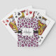 Cartes de jeu d'empreinte de léopard de grands chats d'animal chic, moderne, assez sauvage dans pourpre, noir, et le blanc avec une rayure noire, blanc bordé avec la bannière noire que vous pouvez personnaliser avec une initiale de nom et de monogramme !
