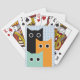 Cartes à jouer adorables mettant en vedette trois chats drôles. L'un est noir, à gauche du dessin, un est orange, légèrement plus bas et à droite du chat noir, légèrement devant lui et l'autre est sarcelle, plus bas que les deux autres chats et debout devant eux. La seule caractéristique des chats est de grands yeux ronds.