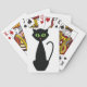 Un chat noir aux yeux verts assis droit. Ce design semble vraiment efficace sur ces cartes de jeu