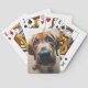 Ces cartes à jouer ont le visage d'un chien sur elles.